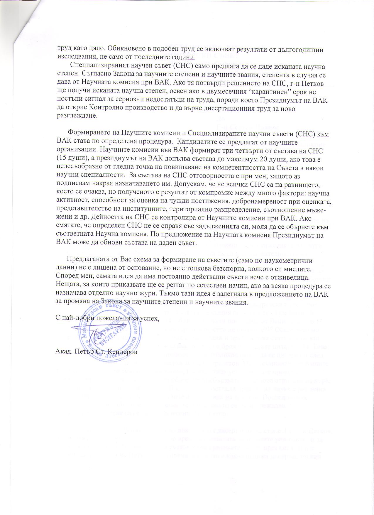 10.05.2006г - СТАНОВИЩЕ върху КОНЦЕПЦИЯ за усъвършенстване на нормативната уредба за научните степени и научните звания в БЪЛГАРИЯ, представена от акад. П. Ст. Кендеров Председател на В А К (Концепцията не носи определена дата) - Проф. д-р ик. н. БЛ. СИВЕНОВ